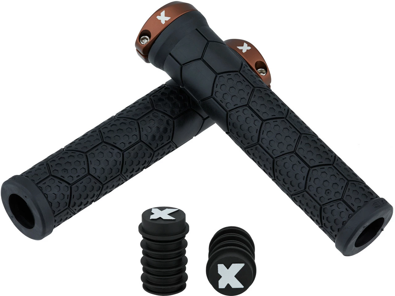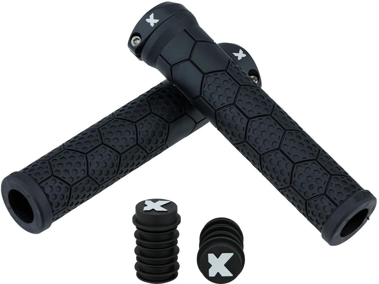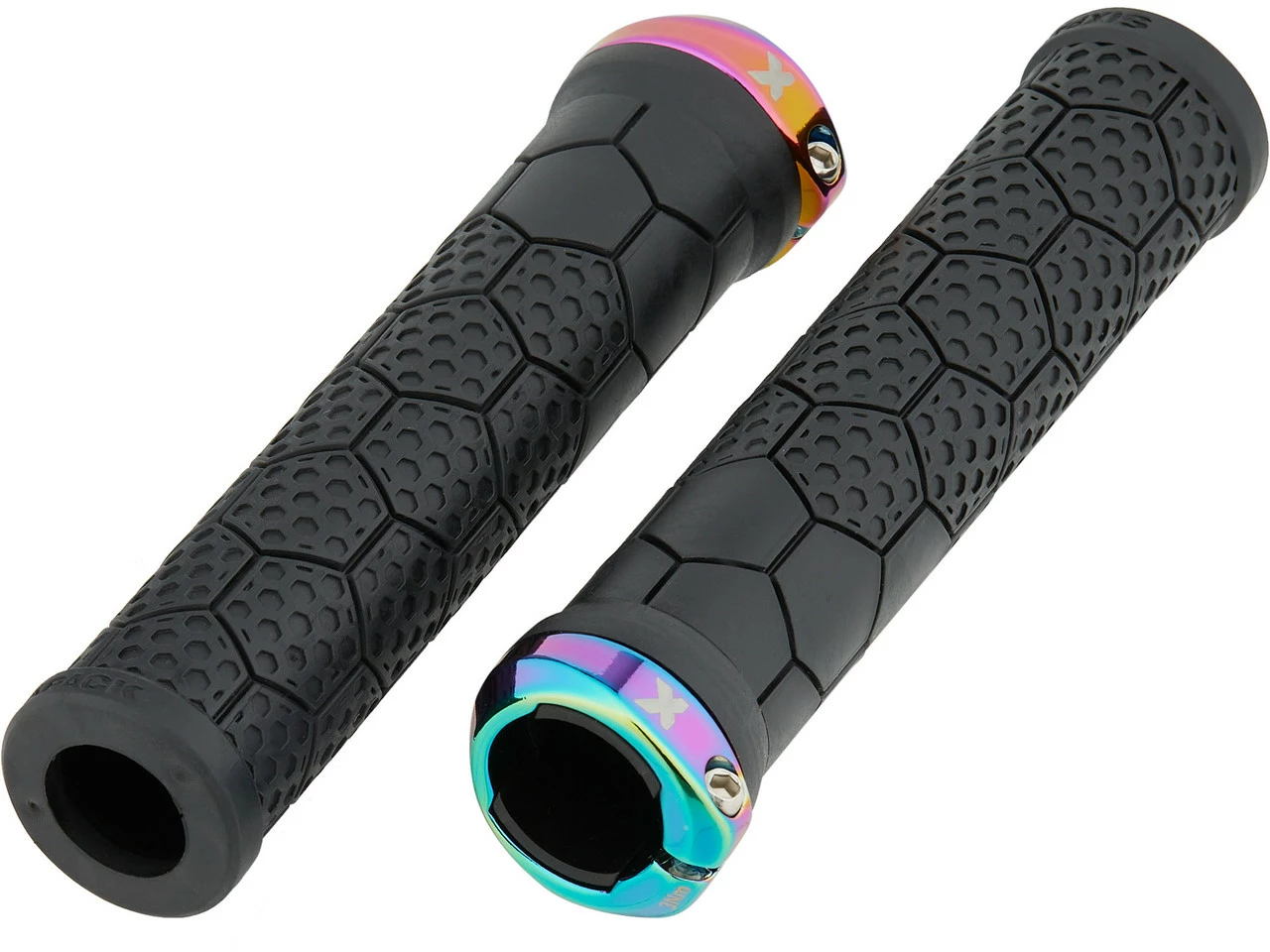 Die schmaleren Z-Trix AL Lenkergriffe von Sixpack Racing mit Wabenprofil und Aluminium-Klemmring
